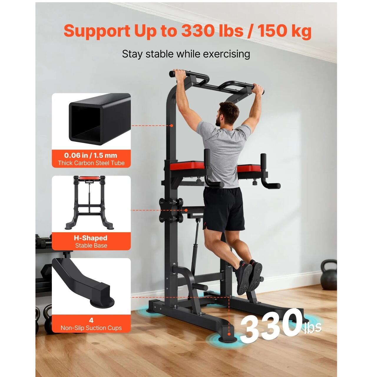Stabila si robusta: Construita din tuburi din otel carbon de 0,06 inci/1,5 mm, aceasta bara de tractiuni sustine pana la 150 kg fara a se indoi. Baza in forma de H si cele 4 ventuze antiderapante sporesc stabilitatea, in timp ce suprafata tubului rezistenta la rugina asigura durabilitate.