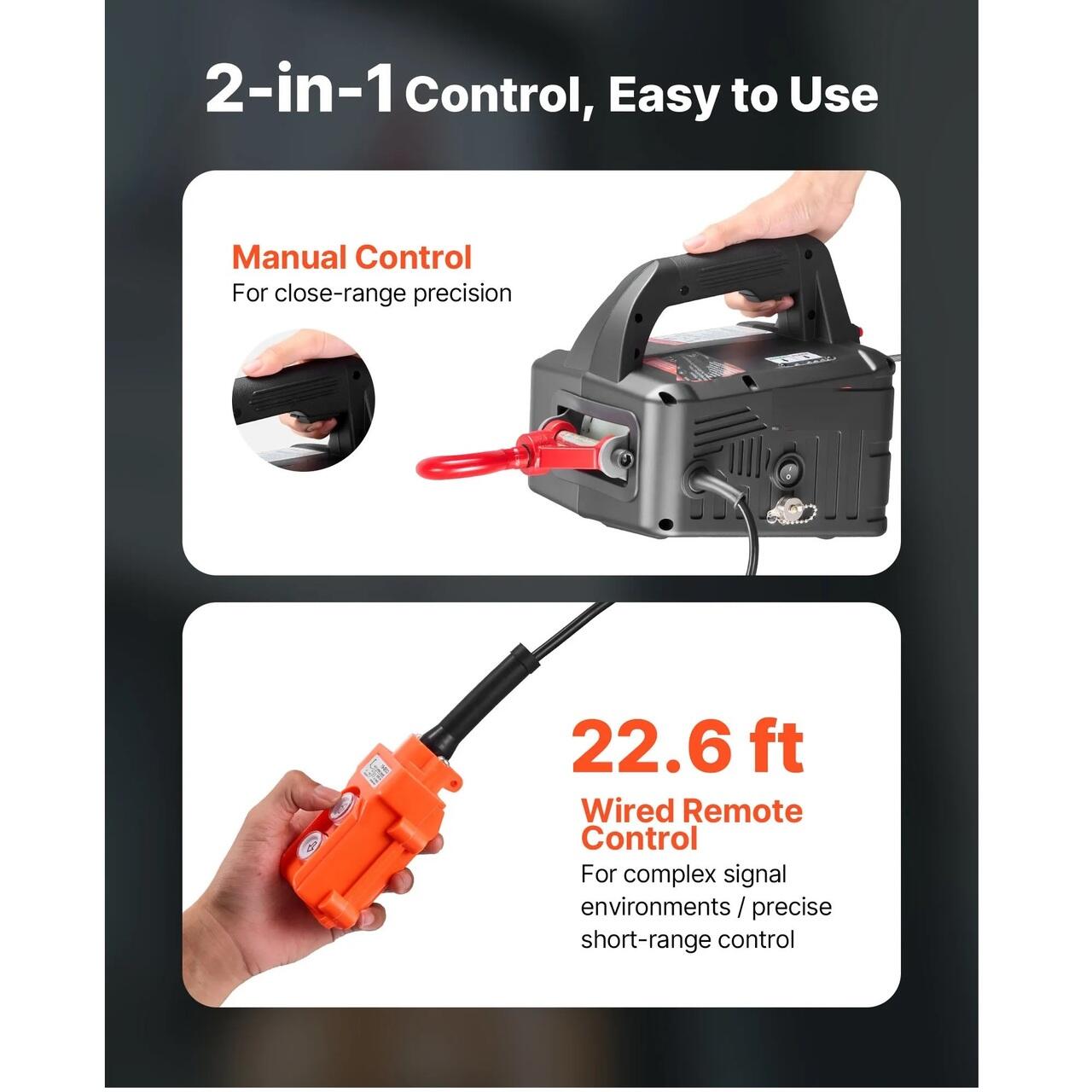 Control usor 2 in 1: Acest palan electric gestioneaza ridicarea verticala si tragerea orizontala. Butoanele manerului raspund rapid, iar telecomanda cu fir de 7,8 m ofera un control precis si precis.