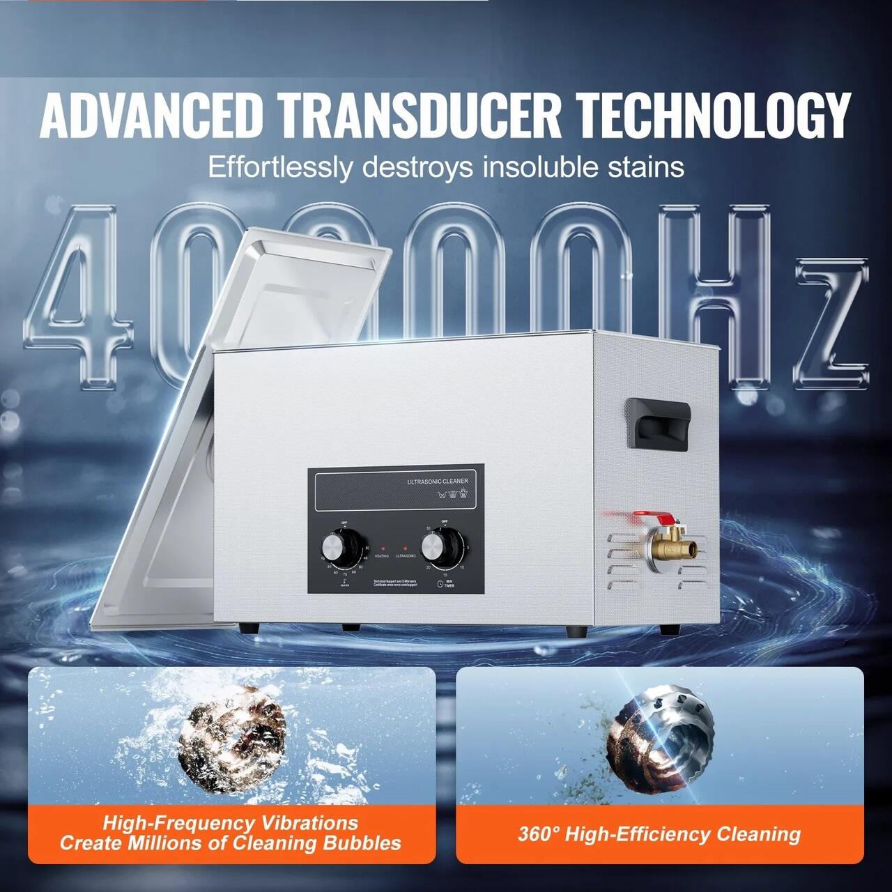 Tehnologie avansata a traductorului: Traductorul eficient, combinat cu undele de soc ultrasonice, descompune instantaneu grasimea persistenta. Cu curatarea la 360° a instrumentelor de precizie, elimina cu usurinta murdaria persistenta si uleiul fara a deteriora obiectele. Fie ca este vorba de articole de zi cu zi sau de nevoi profesionale de curatare, il puteti utiliza cu incredere.