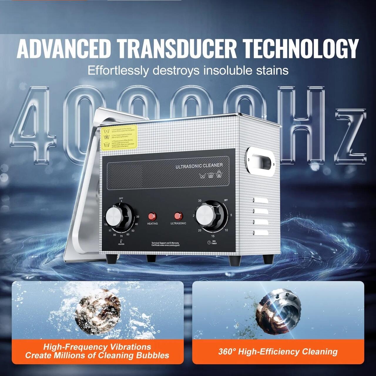 Tehnologie avansata a traductorului: Traductorul eficient, combinat cu undele de soc ultrasonice, descompune instantaneu grasimea persistenta. Cu curatarea la 360° a instrumentelor de precizie, elimina cu usurinta murdaria persistenta si uleiul fara a deteriora obiectele. Fie ca este vorba de articole de zi cu zi sau de nevoi profesionale de curatare, il puteti utiliza cu incredere.