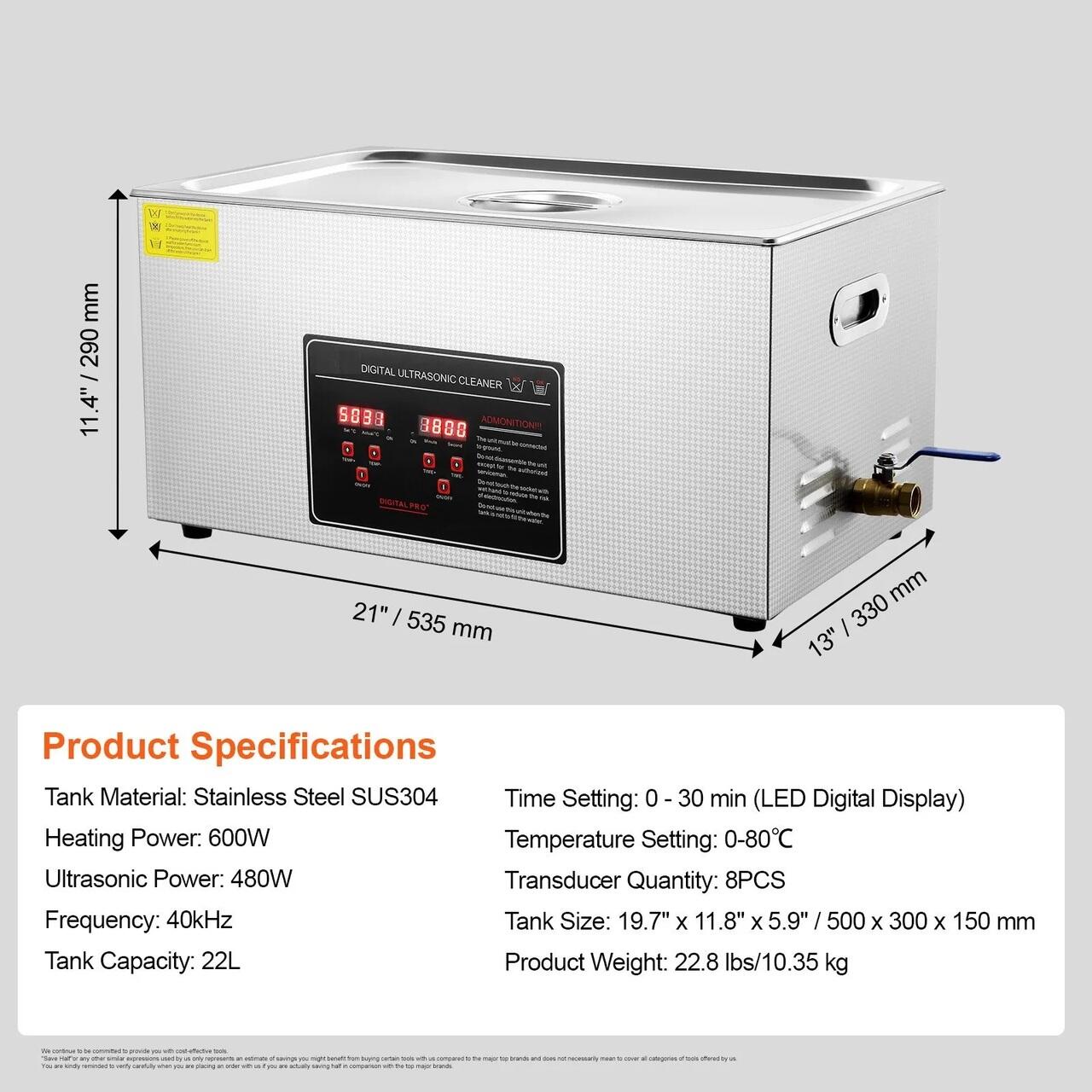 Calitate in care poti avea incredere: Proiectat cu un rezervor si un cos din otel inoxidabil SUS304 premium, modelul de 22L poate pastra si curata in siguranta diverse obiecte valoroase, cum ar fi bijuterii, ochelari de vedere si ceasuri. Atentia la detalii asigura o curatare meticuloasa a fiecarui articol.