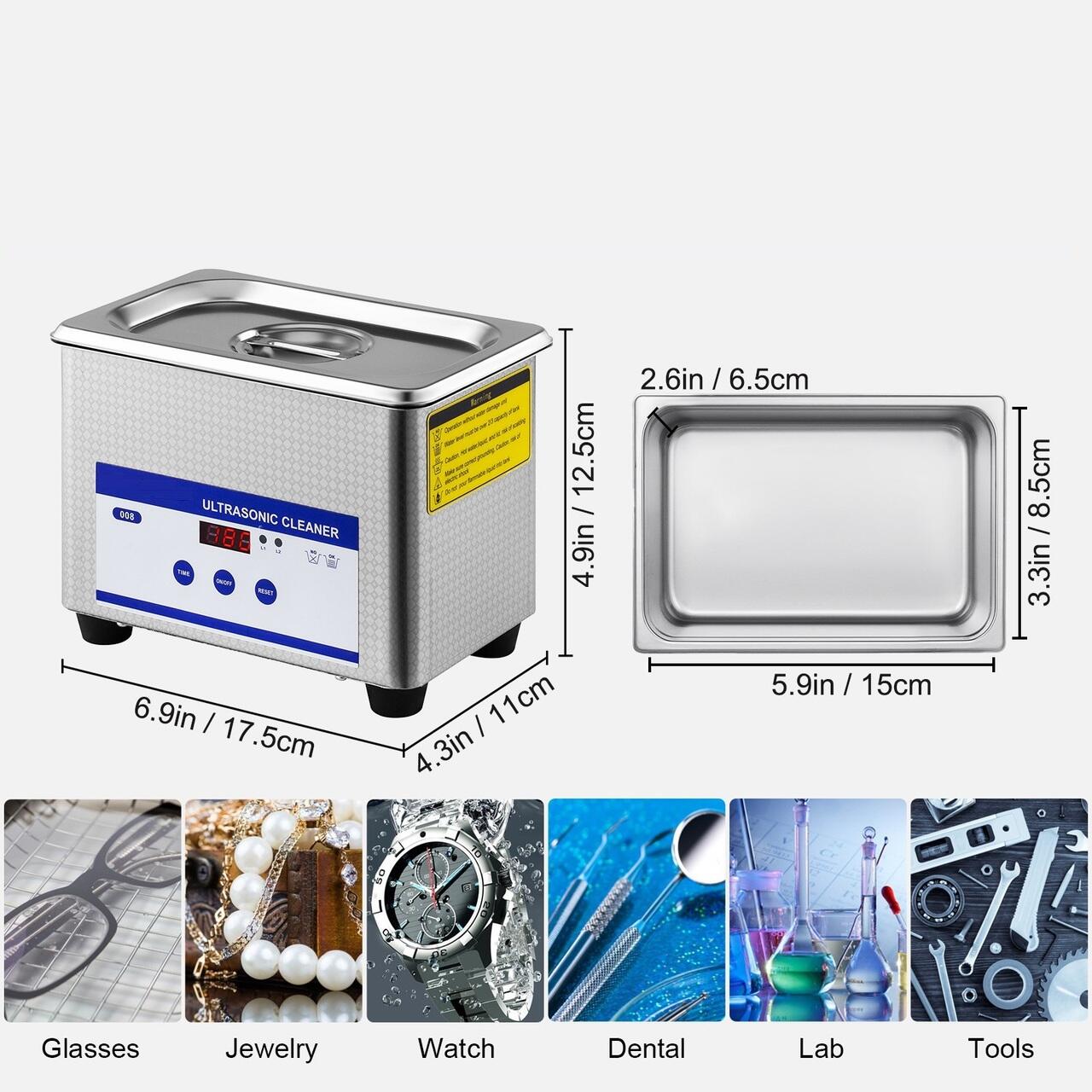 Traductor puternic de 40 KHz:  Putere traductor cu ultrasunete: 35W; Frecvență cu ultrasunete: 40KHZ; Traductoare puternice încorporate, care sporesc puterea ultrasonică și oferă rezultate superioare de curățare. Rezervor de 0,8 l pentru obiecte de dimensiuni mici, zgomot redus în timpul utilizării. Nu vă deranjați niciodată celelalte sarcini.