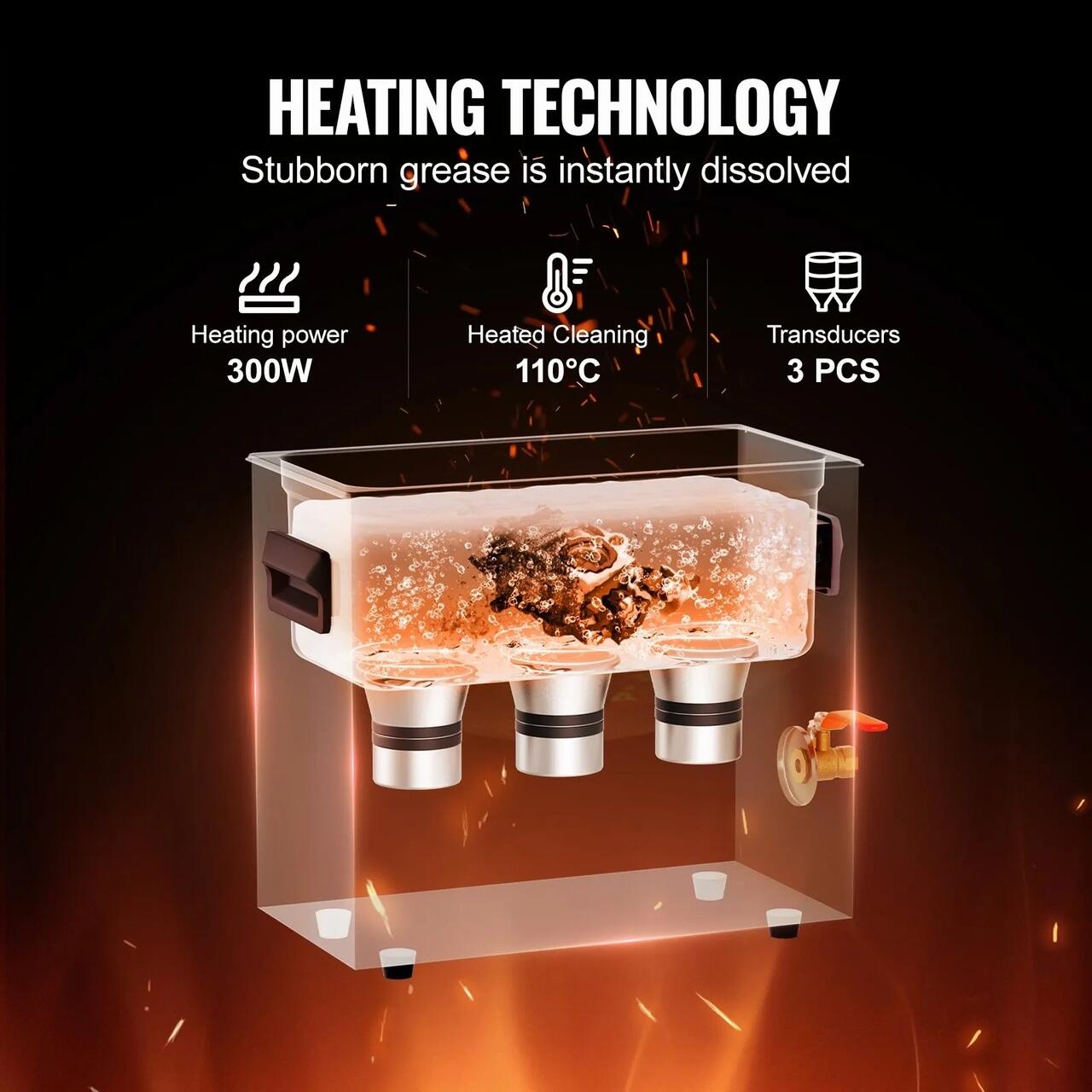 Tehnologie avansata a traductorului: Traductorul eficient, combinat cu undele de soc ultrasonice, descompune instantaneu grasimea persistenta. Cu curatarea la 360° a instrumentelor de precizie, elimina cu usurinta murdaria persistenta si uleiul fara a deteriora obiectele. Fie ca este vorba de articole de zi cu zi sau de nevoi profesionale de curatare, il puteti utiliza cu incredere.