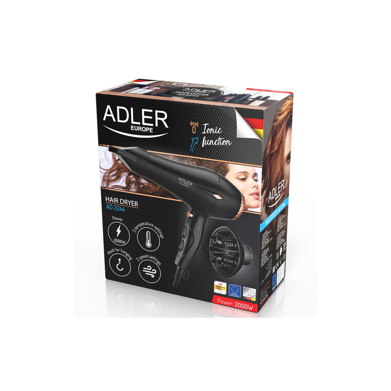 Uscator de par cu functie de ionizare, 2000 W, 3 trepte de temperatura, 2 viteze, Concentrator si difuzor