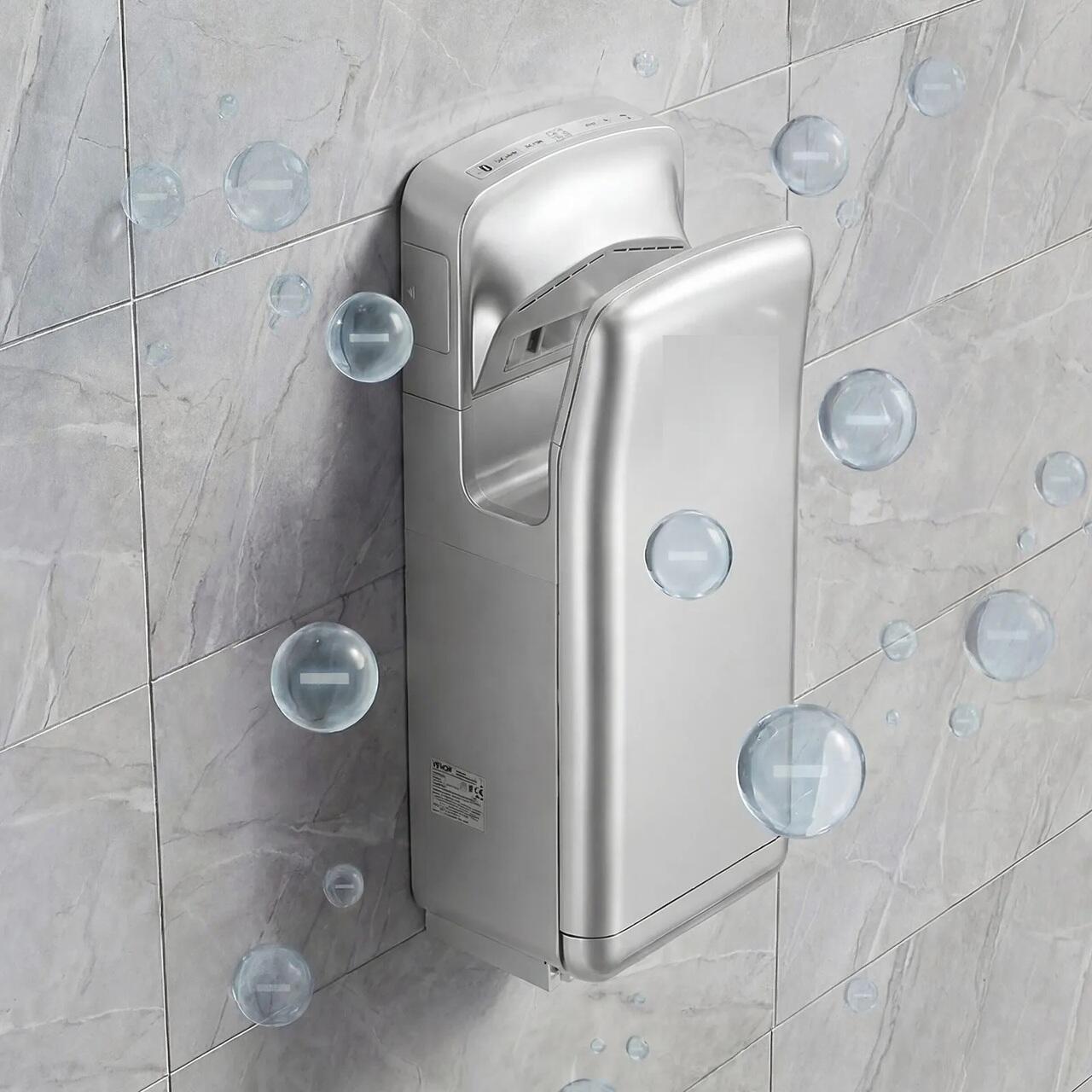 Uscator de maini cu filtru HEPA, Argintiu, 19000 rpm, putere 1950 rpm, Senzor infrarosu, IPX4, oprire automata