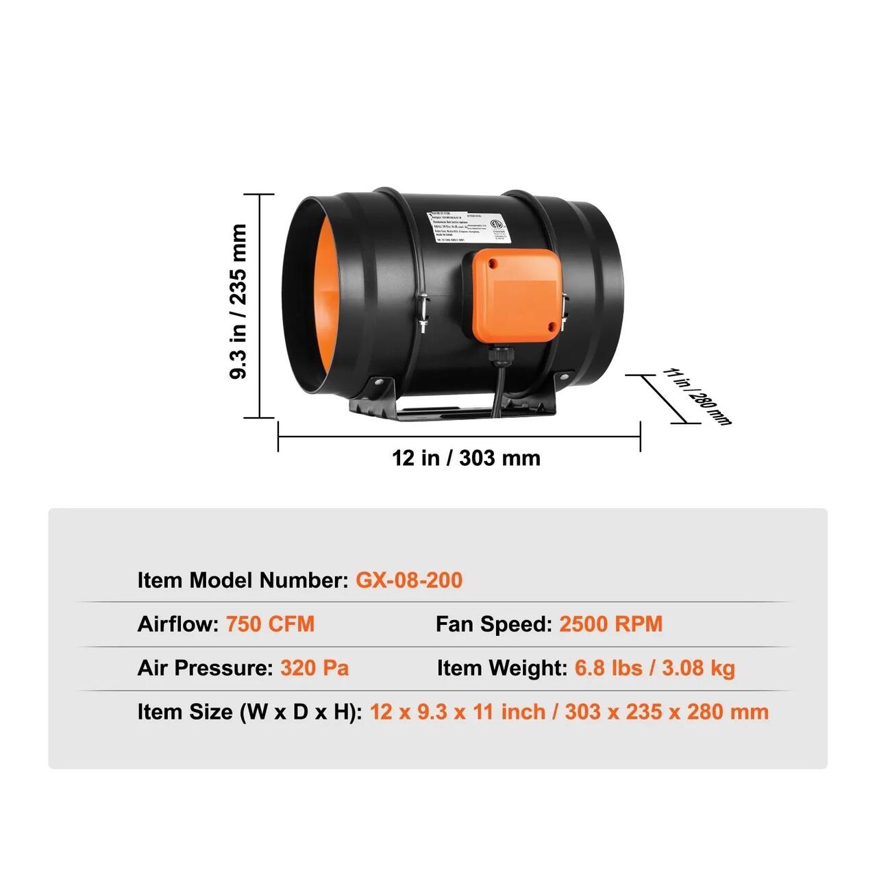 Aplicatii universale: Respirati adanc si relaxati-va. Ventilatorul nostru de conducta in linie este special conceput ca o evacuare a caldurii, umiditatii si fumului, imbunatatind fluxul de aer in corturi de plantare a aerului, camere de plantare hidroponica, camere de echipamente electronice, bucatarii, subsoluri etc. Pregatiti-va sa va lasati purtati de curent. Volum de aer: 860 m³/h (506,2 CFM) ±10%. Viteza: 2150 RPM ±10%.
