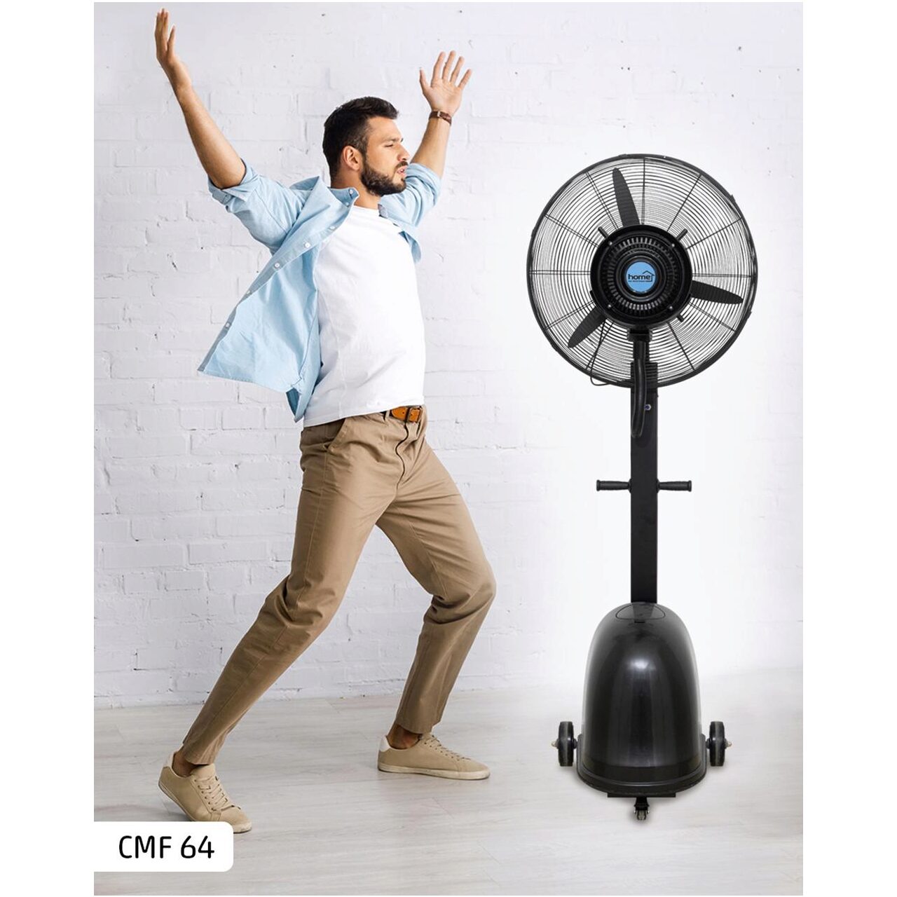 diametru nominal palete: 64 cm capacitate rezervor de apă 49 L umidificare reglabilă fără trepte: 0-5 l/oră flux de aer: 150 m 3 /minut umidificare eficientă: 10 m 3 trepte de ventilator ușor de reasamblat în mod de oscilare unghi de înclinare reglabil ușor de mobilizat cu mânere și pe roți alimentare: 230 V~ / 50 Hz / 300 W dimensiune: ∅65 x 57 x 200 cm