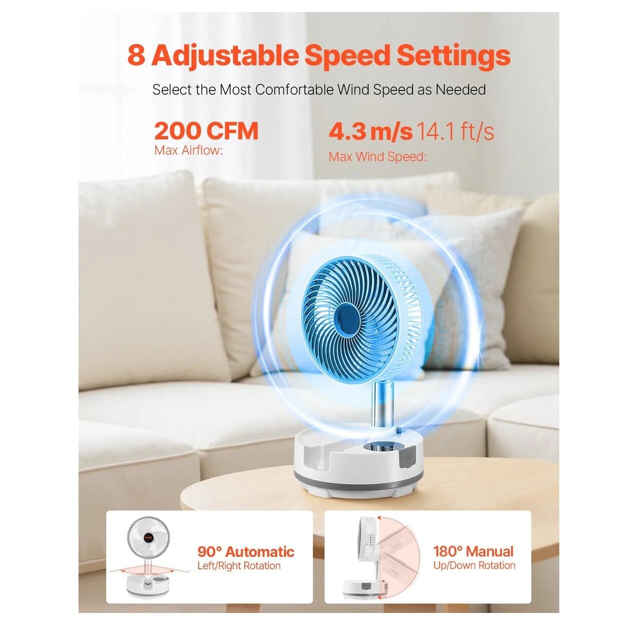 8 viteze si rotatie automata: Echipat cu 8 setari de viteza reglabile, ventilatorul silentios ofera o viteza maxima a vantului de 4,3 m/s si un debit de aer de pana la 200 CFM. Dispune de rotatie automata stanga-dreapta la 90 de grade si rotatie manuala sus-jos la 180 de grade, permitandu-va sa alegeti cu usurinta cea mai confortabila experienta de flux de aer in functie de nevoile dumneavoastra.