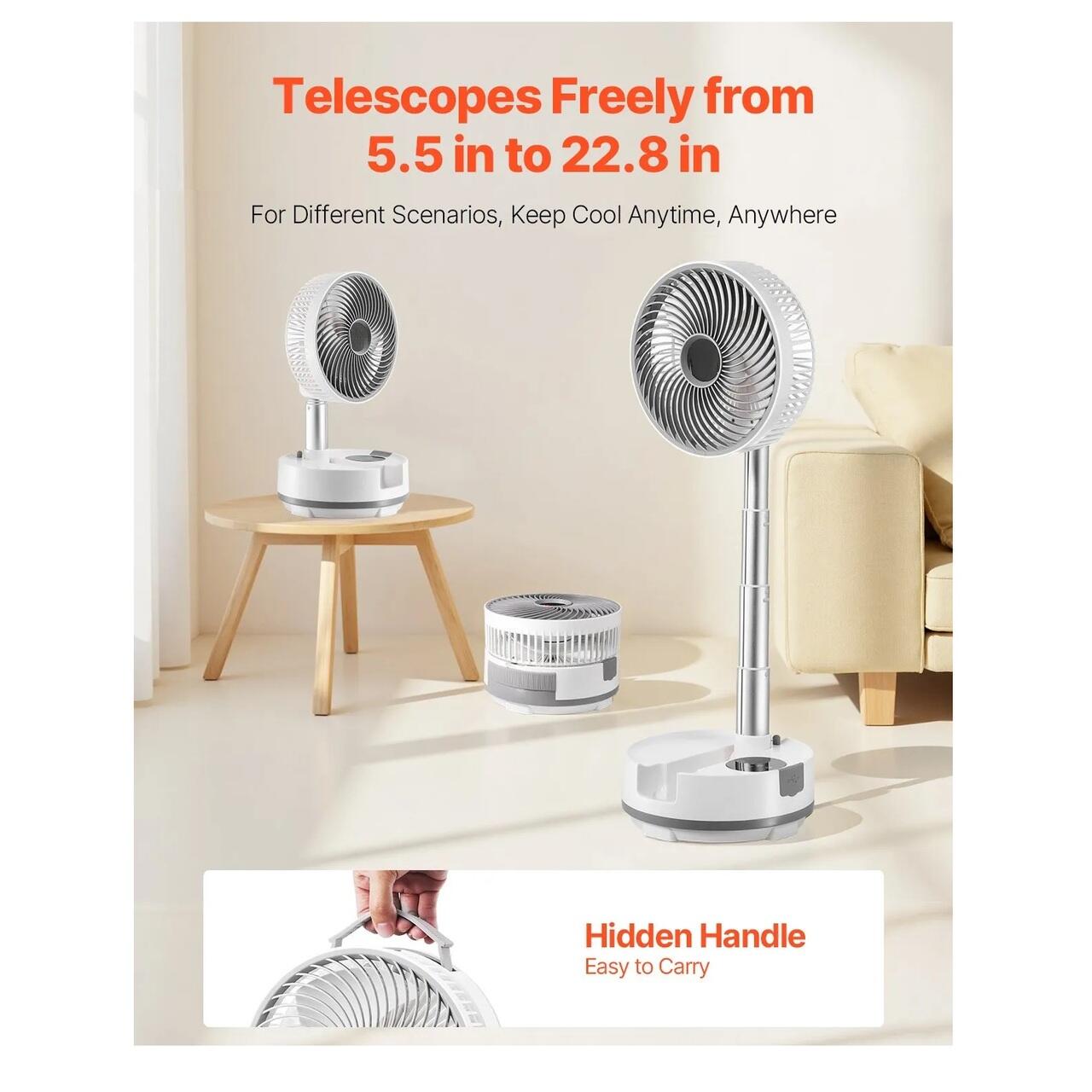 Inaltime reglabila: Acest ventilator de birou dispune de o ajustare flexibila a inaltimii, de la 14,4 cm la 57,1 cm, adaptandu-se usor la diverse situatii. Fie ca este pe birou, langa pat sau in timpul activitatilor in aer liber, ofera o experienta ideala de racire. Designul manerului ascuns face ca ventilatorul sa fie usor de transportat.