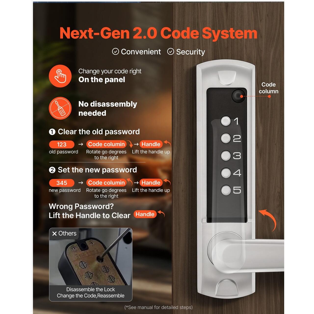 Tastatura mecanica 2.0 imbunatatita: Schimbati codurile direct prin intermediul manerului si al tastaturii fara a scoate incuietoarea si stergeti introducerea cu tasta C. Introducerea in secventa fixa reduce incertitudinea bazata pe uzura. Deblocati cu un cod mecanic simplu - fara a fi nevoie de componente electronice.
