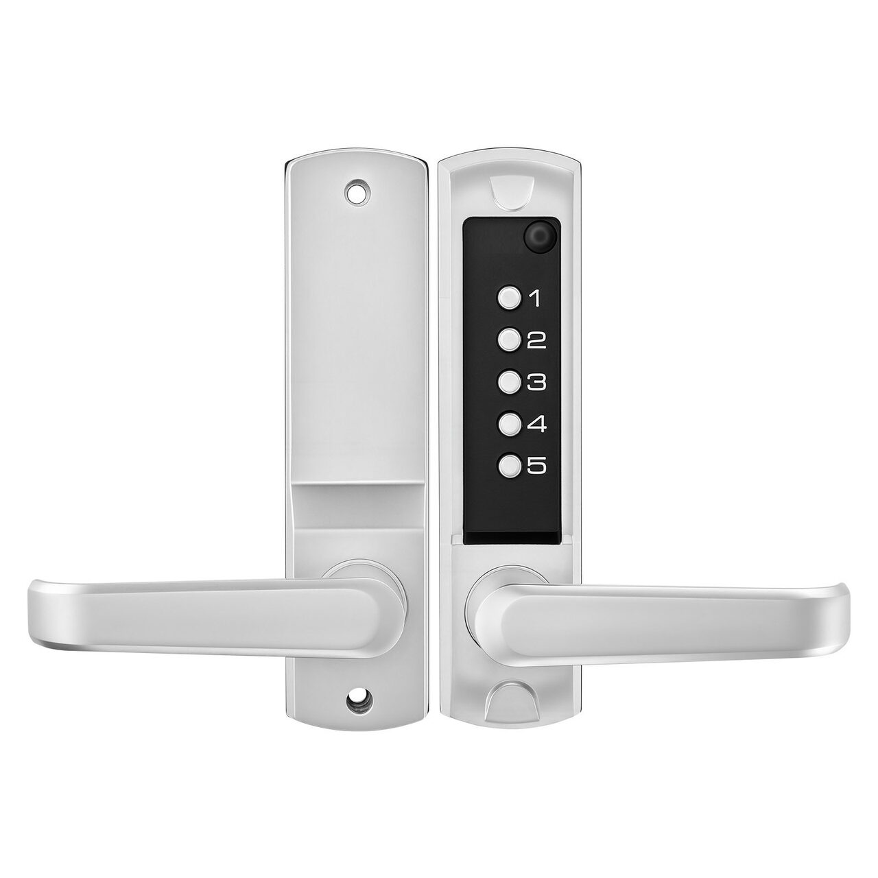 Yala mecanica cu cifru si maner, 5 taste, Blocare automata, Utilizare usa stanga/dreapta, Argintiu, Interior/Exterior