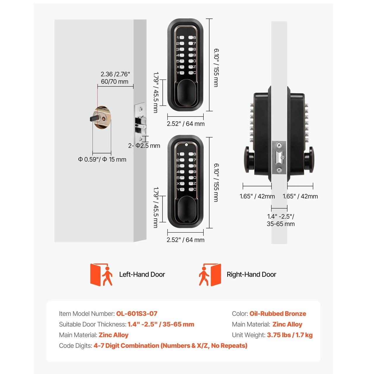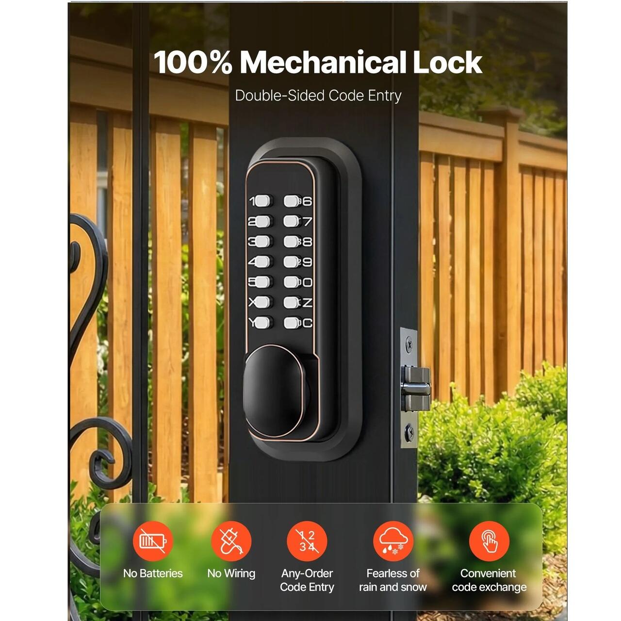 Securitate fiabila fara baterii: Aceasta incuietoare mecanica fara cheie, cu doua laturi, functioneaza fara baterii sau cabluri. Accepta coduri de 4-7 cifre folosind numere si literele X si Z, cu introducere in orice ordine pentru o securitate sporita impotriva ghicirii codului.