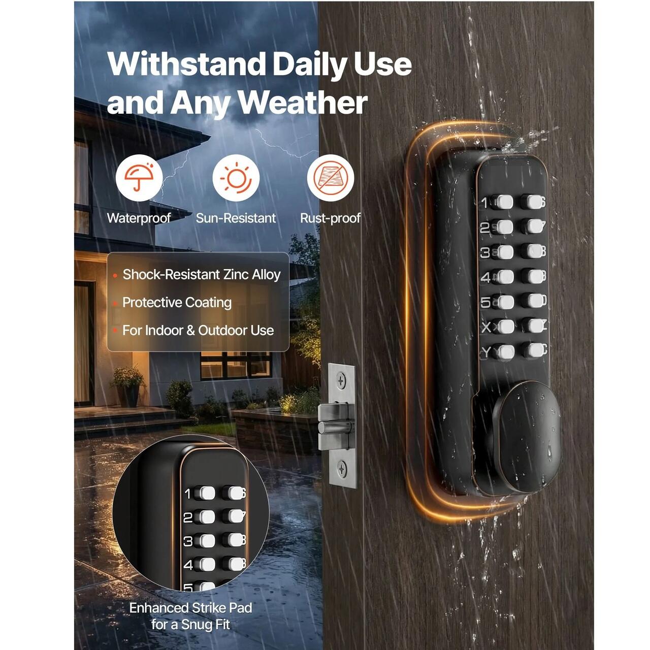 Construita pentru a rezista in utilizare zilnica: Avand o carcasa robusta din aliaj de zinc cu un strat rezistent la rugina, aceasta incuietoare mecanica cu tastatura rezista la ploaie, soare si utilizare frecventa. Este ideala pentru usi de la intrare, porti de gradina, garaje si puncte de intrare interioare sau exterioare.