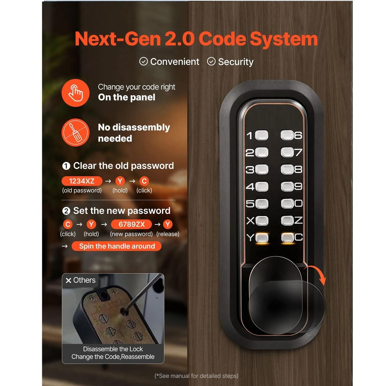 Tastatura mecanica 2.0 imbunatatita: Actualizati codul direct folosind manerul si tastatura fara a scoate incuietoarea. Deblocati cu un cod mecanic simplu - nu trebuie sa va faceti griji cu privire la componentele electronice si introduceti codul cu tasta C pentru corectii rapide.